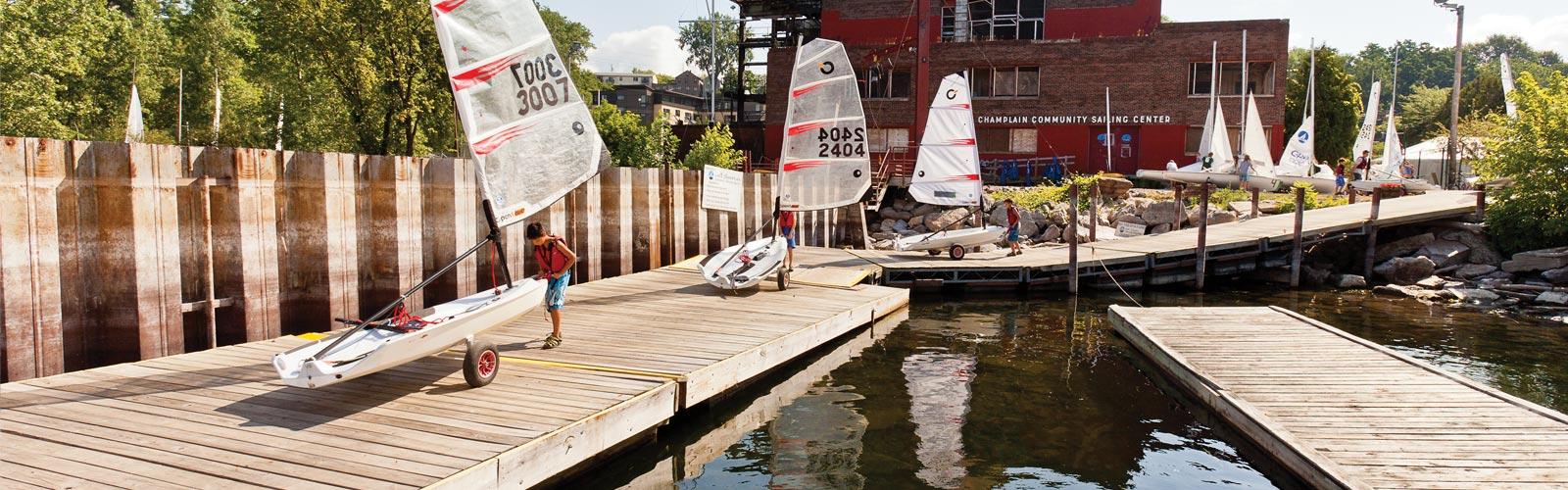 The Community Sailing Center is located on Burlington, Vermont’s waterfront just north of Burlington’s A_Dog Skate Park and the Moran Plant.