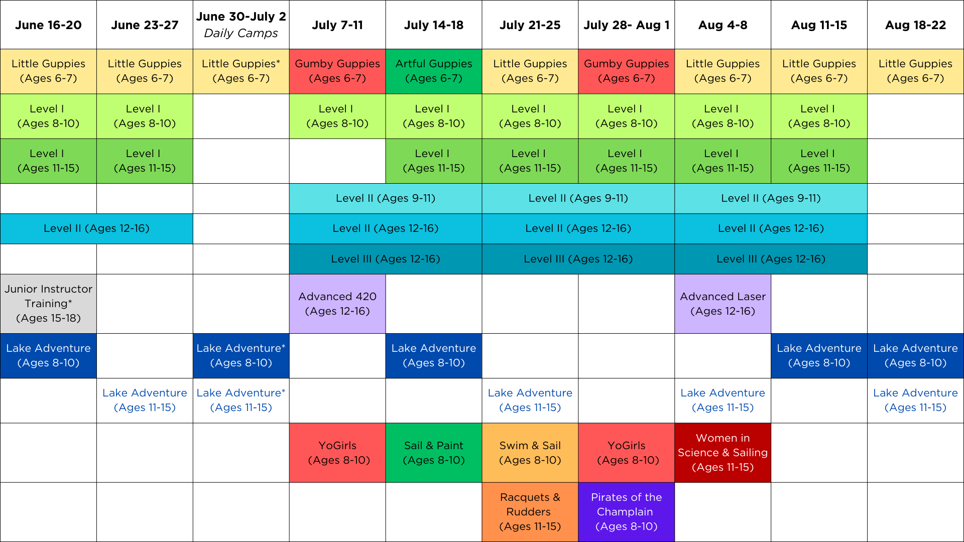 Stars & Stripes Camps the week of June 30-July 2 & Junior Big Boat (dates TBD) will not be part of the lottery. Registration will open after the lottery on February 1.