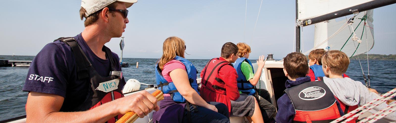 Learn to sail one-on-one with a certified instructor on board. Students learn aboard a boat from our fleet, including Lasers, 420s, Quests, Sonars, & Rhodes 19s. Available for ages 6 & up.